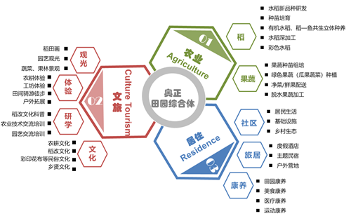 《规划》通过“农业、文旅、居住”“三位一体”发展模式,以有机稻米、有机果蔬为优势主导产业发展精致农业、文创农业,着力构建“核心、支持、配套” 三大产业体系,逐步实现一二三产融合发展,催生衍生产业。搭建政府+公司(山东奥正农业科技发展有限公司)+村集体(农民合作社)+农户+基地”综合平台。以创建国家级田园综合体、国家AAAA级旅游景区全国休闲农业与乡村旅游精品工程、全国中小学生研学实践教育营地、临沂涉农众创孵化基地为发展目标。