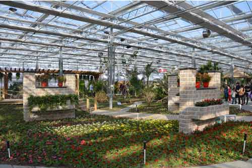 本次考察的第一站“南和县农业嘉年华“位于河北邢台市南和县贾宋镇,是河北省举办的第一个大型农业盛会。该嘉年华由中国农业大学与南和县政府合作建成,规划面积446亩,设施面积达5万余平方米,预计总投资约3亿元。该项目按照“两区、一街、一广场”的模式进行筹办,两区包括创意风情馆区和配套服务区,其中创意风情馆区分为蔬朗星空、畿南粮仓、本草华堂、童话果园、花样年华、同舟共冀六大华丽篇章;配套服务区由入口活动区、后勤管理区、餐饮服务区、停车服务区等区域组成;一街为民俗展览街;一广场为文化主题广场。此次农业嘉年华最核心部分创意风情区的6个主题场馆已完成建设布展并对外开放。