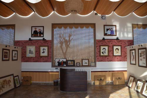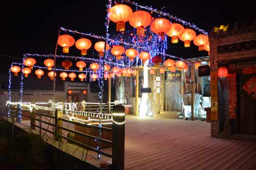 本次考察的第二站“粮画小镇“位于馆陶县县城西约3公里处的寿东村,以粮画”而闻名。春节期间,村内夜景如画,游人如织,好不热闹。该村以土地入股方式吸引粮画企业—海增粮艺公司入驻,在村里建设了粮食画生产基地,有粮食画展厅、加工车间、粮画体验厅、五谷餐厅等一条龙生产、包装、体验设施,采取公司+农户+基地的发展模式,由农户制作粮食画,公司统一包装出售。现在村中从事粮画创作的达到80余户,户均增收1.5万元,成为村民增收的特色产业。村内有栩栩如生的粮画胡同,地道韵味的农家院,典雅精致的咖啡屋,粮画姑娘,电影院,还有艺术范儿的葫芦画展厅、麦秸画展厅、蛋雕工作室等,传统与时尚交融,乡村风情与城市品质完美结合,使之一跃成为2015年“中国最美十大乡村”之一。